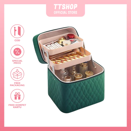 Bisa muat banyak produk kosmetik seperti : lipstik, perhiasan, jam tangan, dan berbagai macam skincare lainnya.